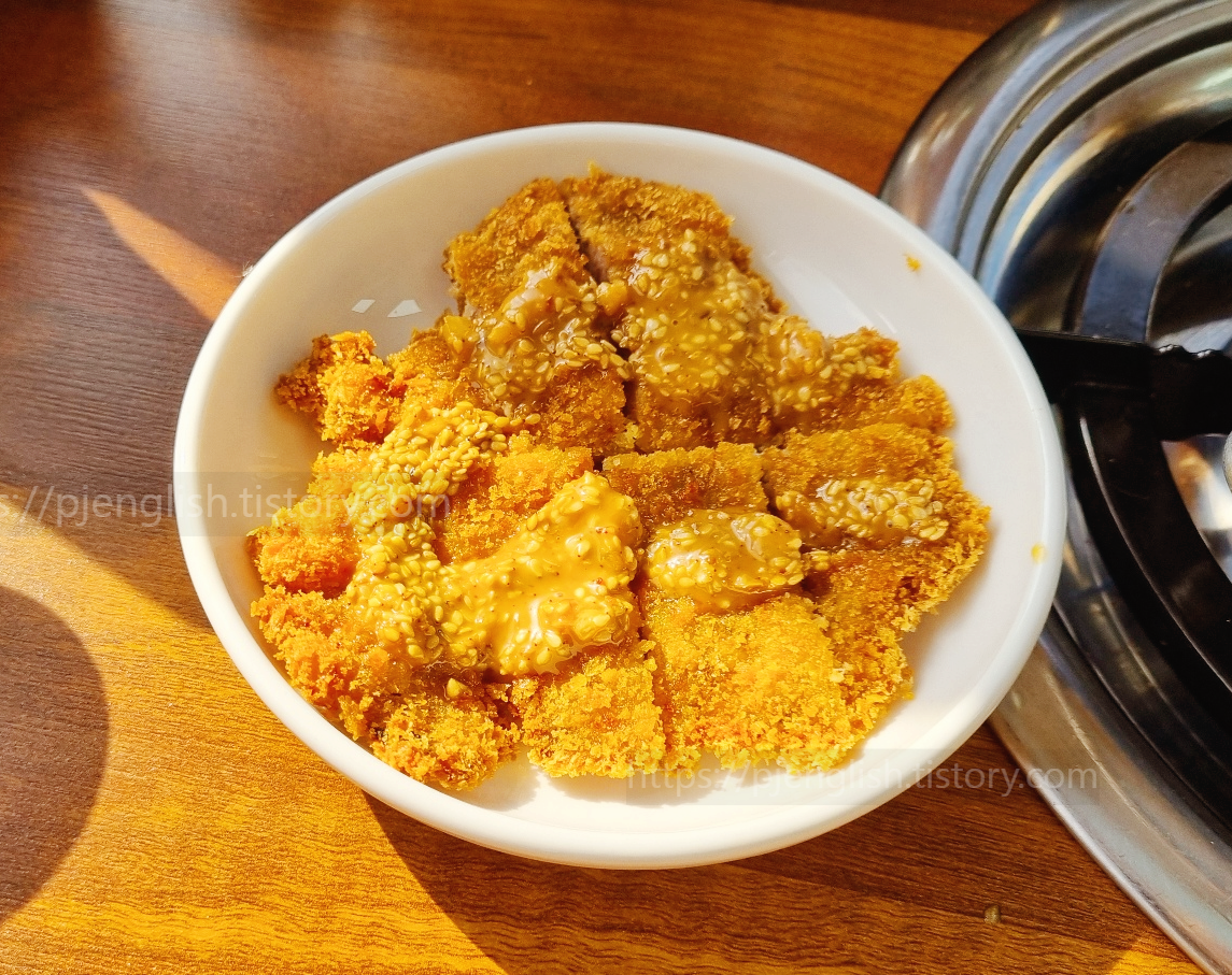특히, 아이들이 있는 테이블에만 서비스로 제공되는 돈까스는 트롯트가수 이찬원이 소개한 소스를 위에 뿌려주는데, 메인 추가 메뉴로 내놓아도 손색이 없을 정도이다.