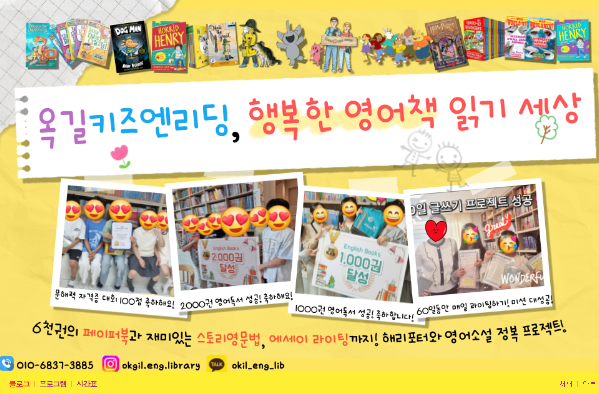 옥길 영어도서관 키즈엔리딩은 "이렇게 공부해도 정말 수능까지 잘 볼 수 있을까?"하는 의문이 들 정도로 차별화된 프로그램과 커리큘럼으로 수업이 진행됩니다.